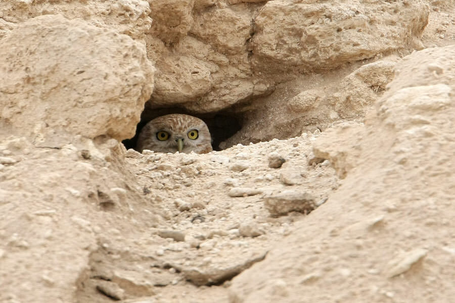 I visited the site with Brian and Mike & Sylvie Newey. We tried to see Red-tailed Wheatear in an other wadi but for vain. Later on we arrived to wadi Umm Al Rimam where we saw immediately male Finsch’s Wheatear. Soon Redtailed Wheatear was discovered further down in the wadi. Before leaving the wadi system Mike and Sylvie picked up Little Owl that we haven’t seen for almost three years. Birds of The Middle East, second edition, treats it as an independent species, Lilith Owl (Athene lilith) The bird is srikingly pale and definetely its habitat here is very much different than in Europe so for good reasons it may gain species status in the near future.