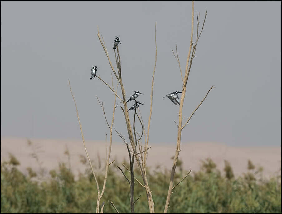 Northern Shoveler Anas clypeata 5, Common Pochard Aythya ferina 1, Little Grebe Tachybaptus ruficollis 12, Grey Heron Ardea cinerea 3, Little Egret Egretta garzetta 2, Squacco Heron Ardeola ralloides 2, Western Osprey Pandion haliaetus 1, Greater Spotted Eagle Clanga clanga 2, Western Marsh Harrier Circus aeruginosus 3, Bonelli’s Eagle Aquila fasciatus 1, Grey-headed Swamphen Porphyrio (porphyrio) poliocephalus 4, Common Moorhen Gallinula chloropus 10, Eurasian Coot Fulica atra 75, Green Sandpiper Tringa ochropus 1, Caspian Tern Hydroprogne caspia 4,White-throated Kingfisher Halcyon smyrnensis 5, Common Kingfisher Alcedo atthis 1, Pied Kingfisher Ceryle rudis 7, Blue-cheeked Bee-eater Merops persicus 5, Mauryan Grey Shrike Lanius lahotra pallidirostris 2.