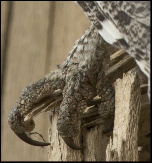 Pallid Scops Owl toes showing feathering extending to the base of toes