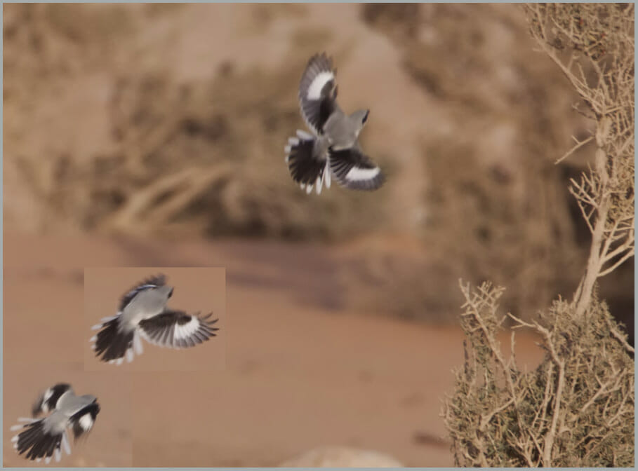 Desert Wheatears 5, Black Scrub Robin 6, Green Bee-eater 5, Arabian Grey Shrike 4, Graceful Prinia 2, Blackstart 5, Desert Warbler 4, Desert Whitethroat 5, Isabelline Wheatear 4, Desert Lark 2, Pallid Swift 50, Steppe Eagle 30, Eurasian Hoopoe 2, Hypocolius 14, White-eared Bulbul 10, Laughing Dove 30, Collared Dove 20.